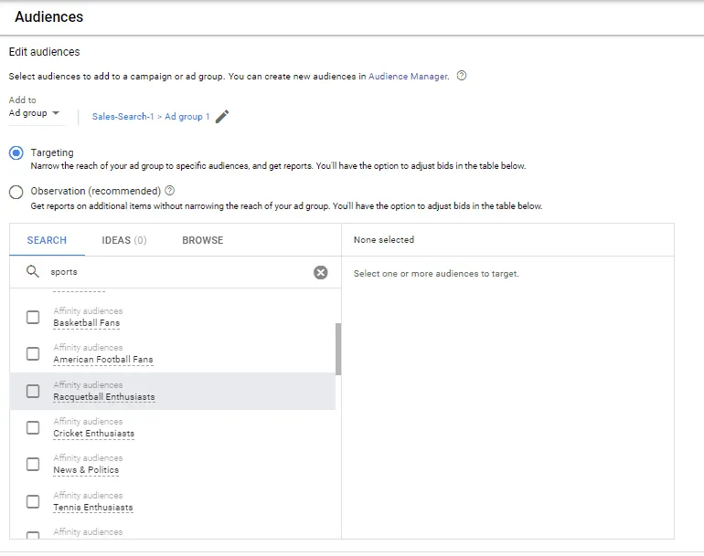 There are two modes for adding each audience option in Google Ads: Targeting or Observation. This distinction matters across most Google Display Ads targeting options, especially on MOFU.