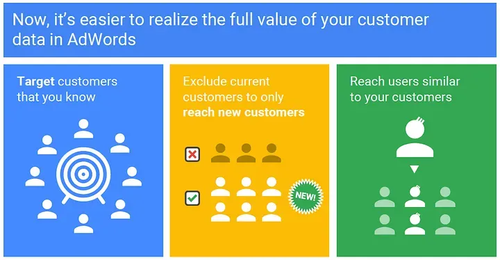 Customer Match allows you to upload CRM data to Google Ads and show ads to specific people from that list if they are logged into their Google account. This is one of the most precise forms of Google demographic targeting only in the sense that the audience is defined first and filtered later by account data.