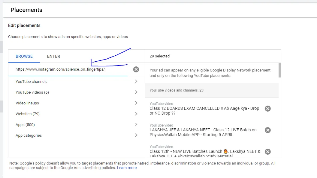 - In Google Ads, go to Audiences > Keywords and Content > Audiences