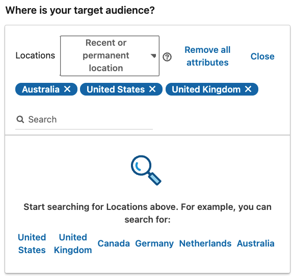 "Locations" is the only required field for every LinkedIn campaign. Among all LinkedIn ad targeting options, this is the only one you cannot skip. Without it, the campaign cannot be launched.