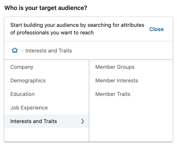 We recommend using interests and groups as a refinement layer, not as the basis for targeting. They work best on top of firmographic and job-based filters. In many cases, it’s more useful to apply them as an exclusion layer to remove segments with a low probability of conversion.