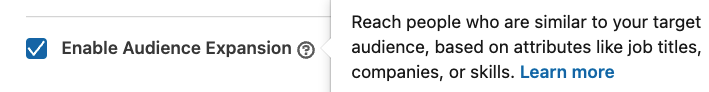 Audience Expansion works differently. This tool automatically expands your reach to include users that LinkedIn considers similar to your initial audience. The algorithm itself determines who is considered "similar enough." Advertisers have no control over this expansion and no transparency regarding the underlying criteria.