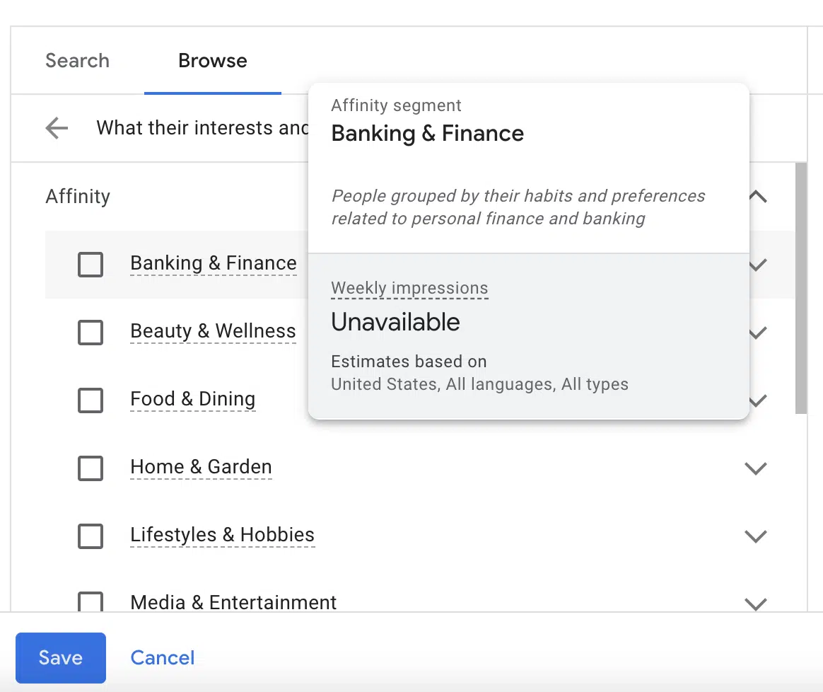 But avoid Affinity Audiences and Google's automatic recommendations. They optimize reach, not relevance. In a B2B context, this means wasting your budget on non-targeted audiences.