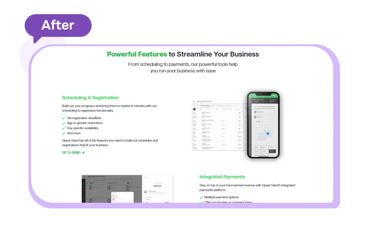 While Upper Hand’s paid ads were driving strong traffic, we noticed an opportunity to further improve lead quality by optimizing the landing page experience. The existing page, which focused on business value, was effective—but we wanted to better align with the mindset of top-of-funnel users.